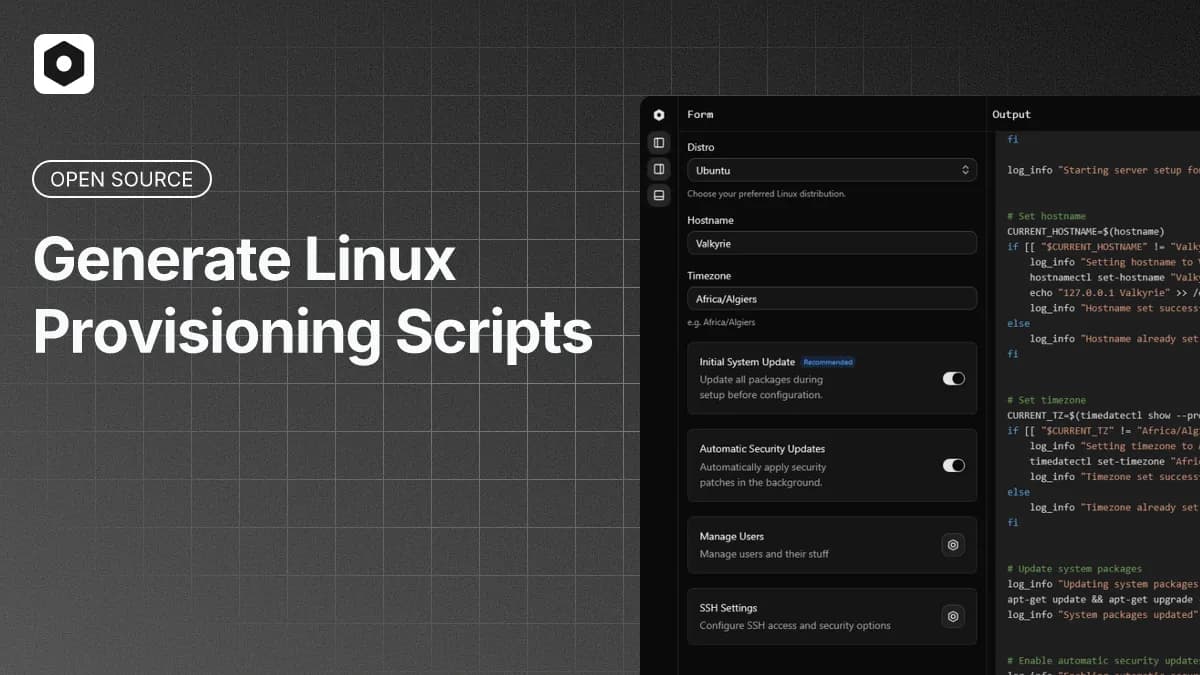A GUI tool for generating Linux provisioning scripts. Simple interface, reliable output.